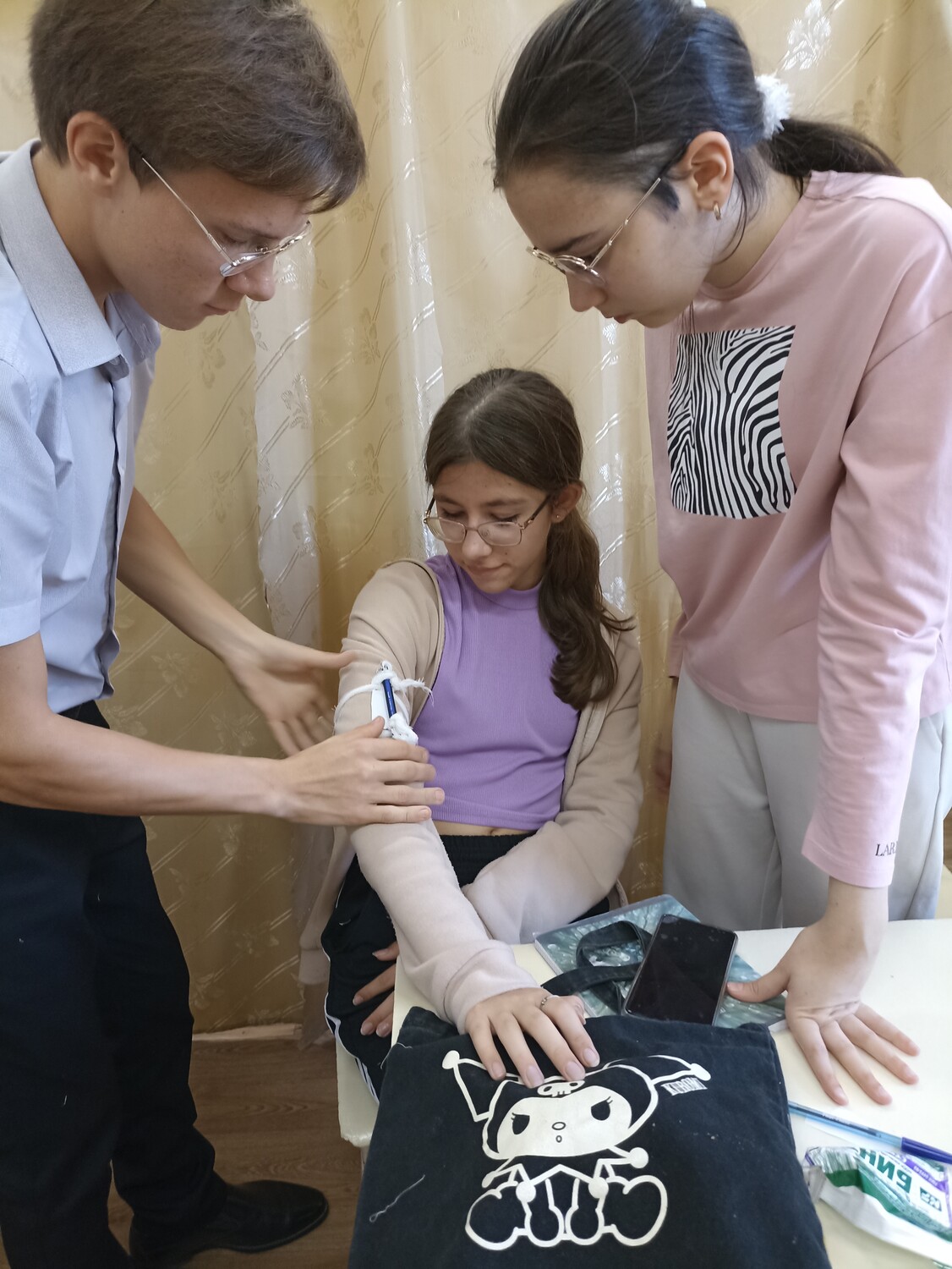 Кровоостанавливающий жгут применяют при сильном артериальном кровотечении и при синдроме длительного сдавливания. Есть изречение : «Промедление - смерти подобно»- это как раз об этом. На занятиях обучающиеся программы «Младшая сестра (брат) милосердия» изучили правила и отработали технику наложения жгута и импровизированного жгута-закрутки из подручных средств.