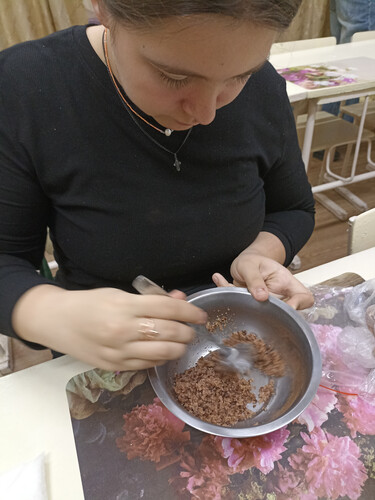 Обучающиеся по программе «Младшая сестра (брат) милосердия отработали технику изготовления ароматного кофейного скраба, совершенно натурального, который отлично подходит для спа-процедур.Кофейный скраб-популярное средство для отшелушивания и тонизации кожи, а его применение включает массаж по влажной кожи и смывание его водой.