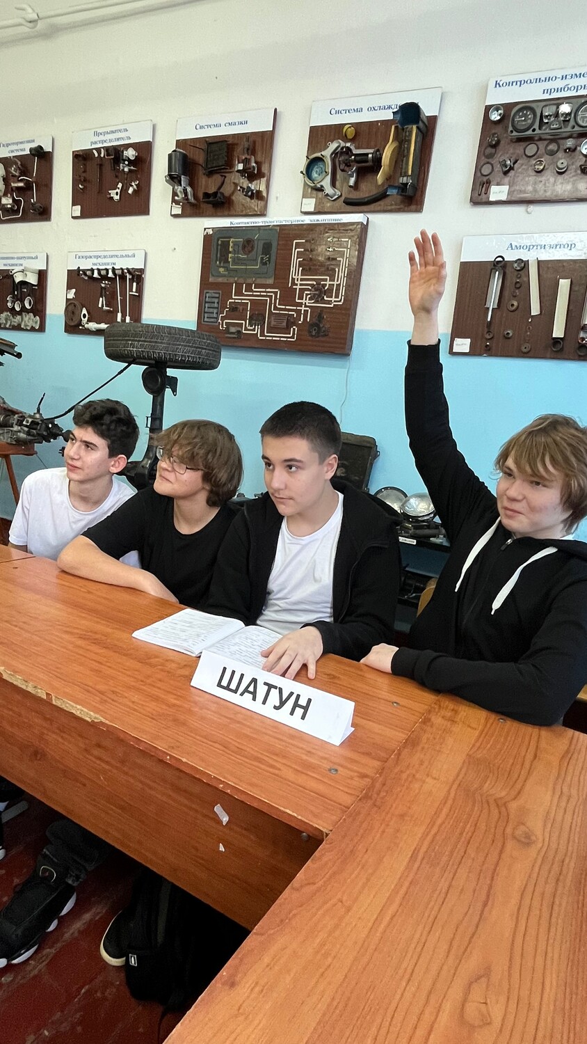 В рамках Недели профессий обучающиеся группы А-1/2 (ППП «Слесарь по ремонту автомобилей») под руководством педагога Тронь В.Г. участвовали в викторине «Автомобильные двигатели внутреннего сгорания», где продемонстрировали полученные знания в области устройства автомобиля и его обслуживания.