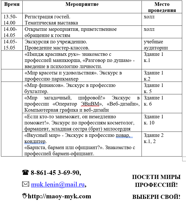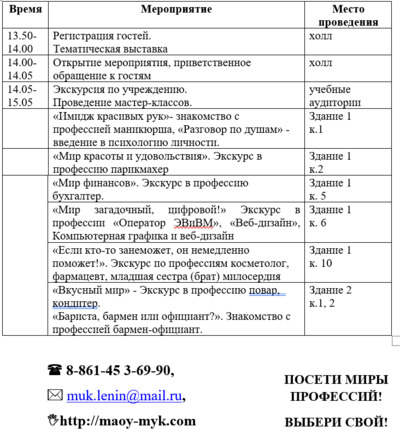 Приглашаем обучающихся, родителей и заинтересованных лиц посетить открытые мероприятия и мастер-классы в Ленинградском учебном центре.