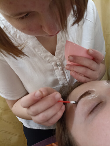 Окрашивание бровей - косметическая процедура по изменению цвета волосков и кожи под ними с помощью стойкой краски или хны, позволяющая сделать брови более выразительными, скорректировать форму и скрыть «проплешины», сохраняя результат до 4 недель. Обучающиеся программы «Основы косметологии и макияж» изучили и отработали протокол профессионального окрашивания бровей краской.
